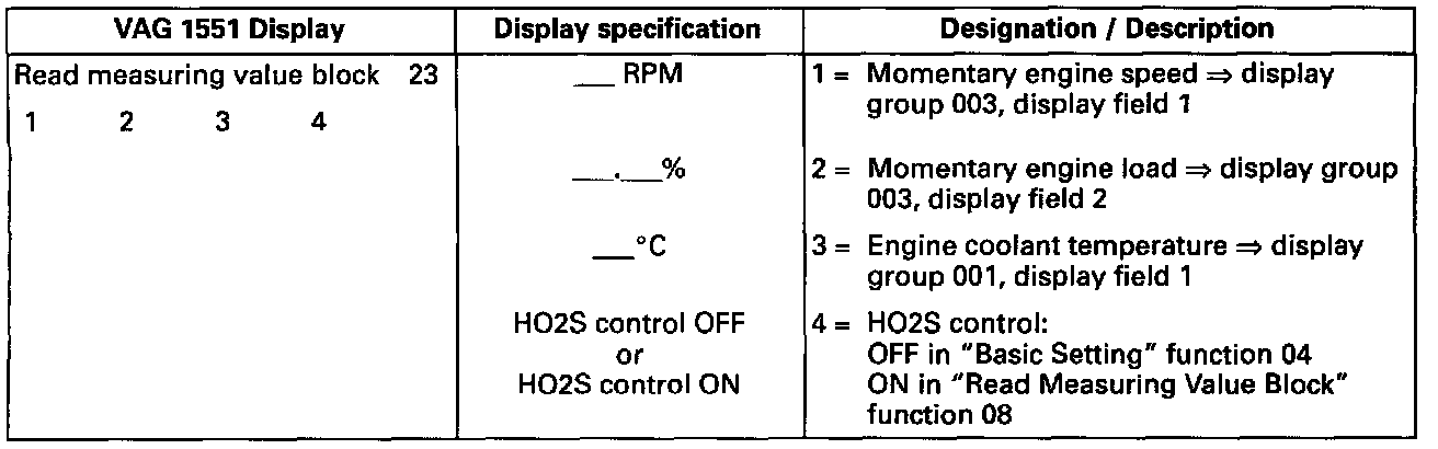 Key to VAG 1551 Display, Measuring Value Block 23