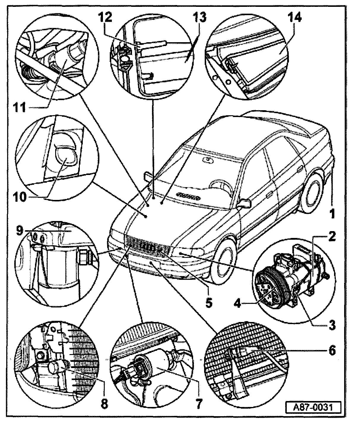 7 - A/C refrigerant high pressure switch -F23-/-F118-)**