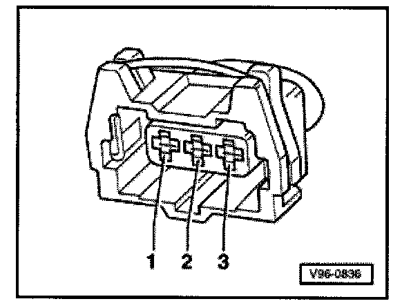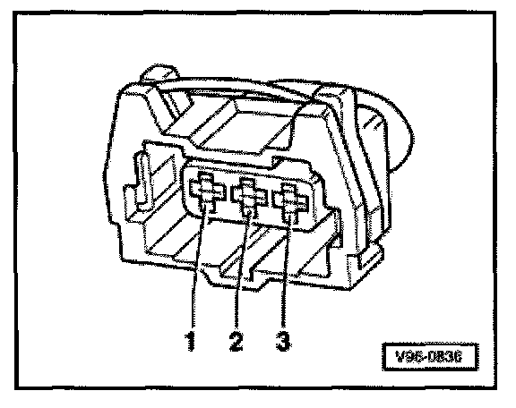- Switch multimeter (Fluke 83 or equivalent) to measure voltage and connect between connector terminals 2 (GND) and 3 (B+) using jumper wires from connector test kit VW 1594.