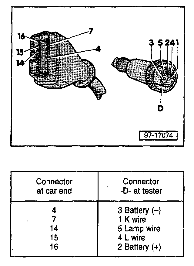 - Connector at car end and connector -D- at tester end of diagnostic cable VAG 1551/3