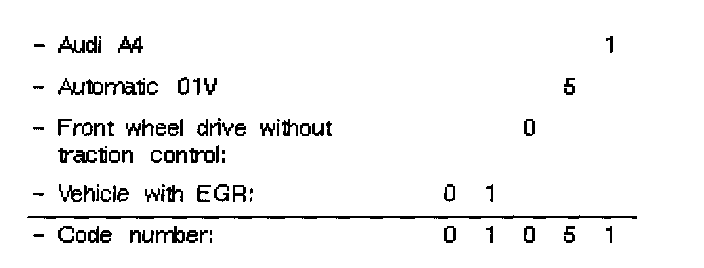- Enter code number for vehicle and press -Q- button to confirm input. Coding variations, See Engine Control Module (ECM), Coding Variations