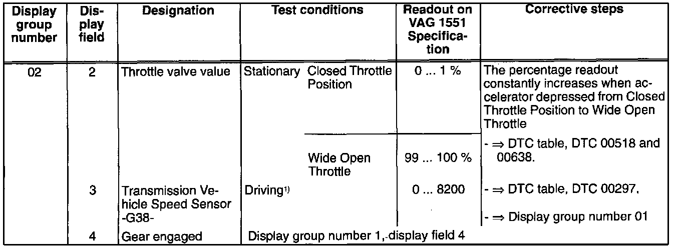 1) When driving, a 2nd technician is required for reading the specifications, - SEE WARNING.