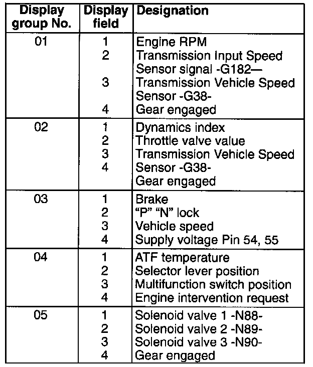 - Connect Scan Tool VAG 1551, enter address word "02 Transmission electronics" and move forward in program until "Select function XX" appears in display. Connecting and Operating VAG 1551 Scan ToolReadout in display