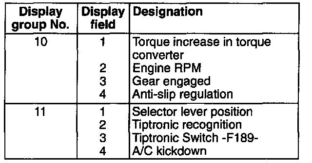 4 display fields always appear in the measuring value block. For an explanation of values 1 to 4 in the individual display fields - Test table.