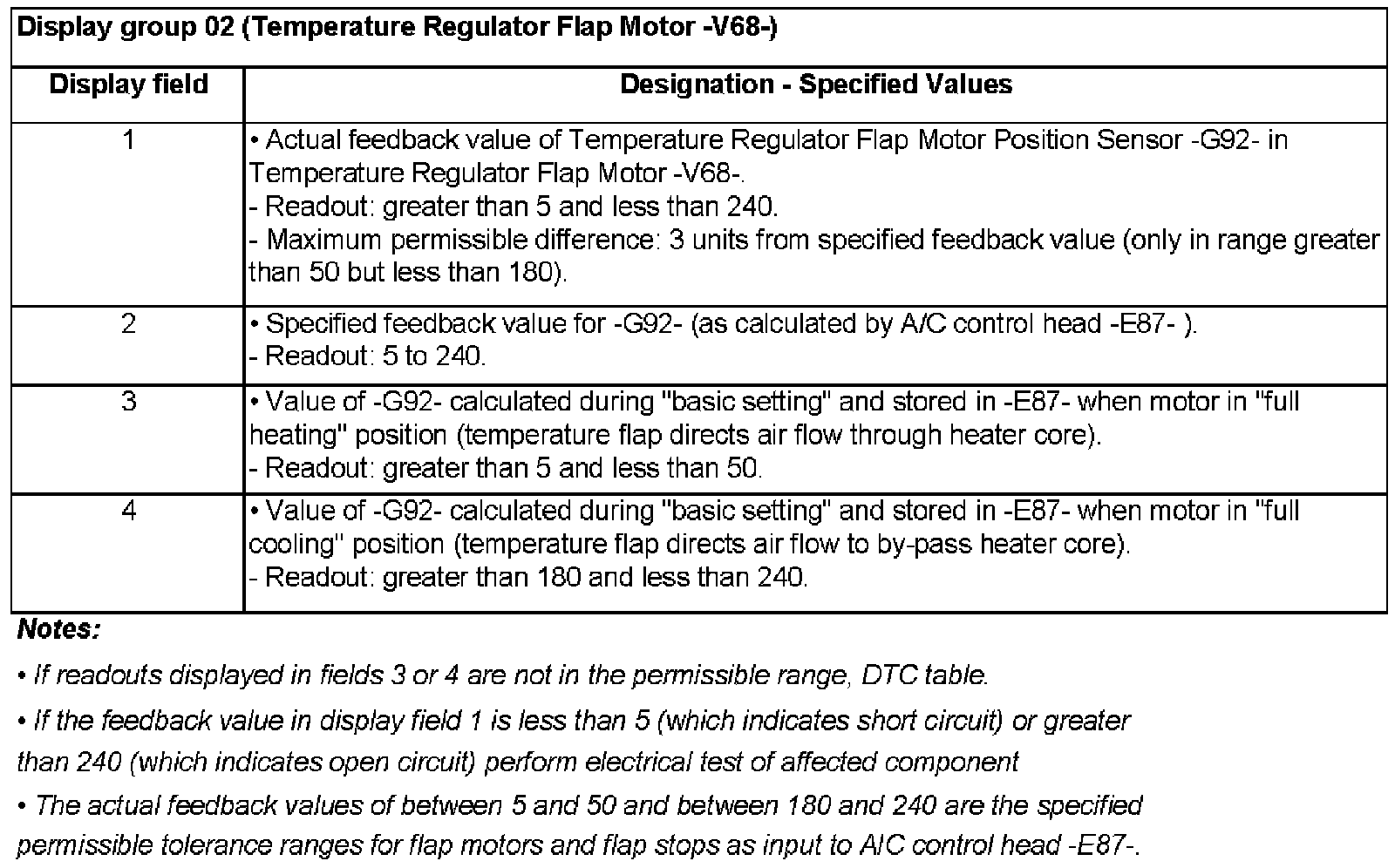 Display group 02 (Temperature Regulator Flap Motor -V68-)