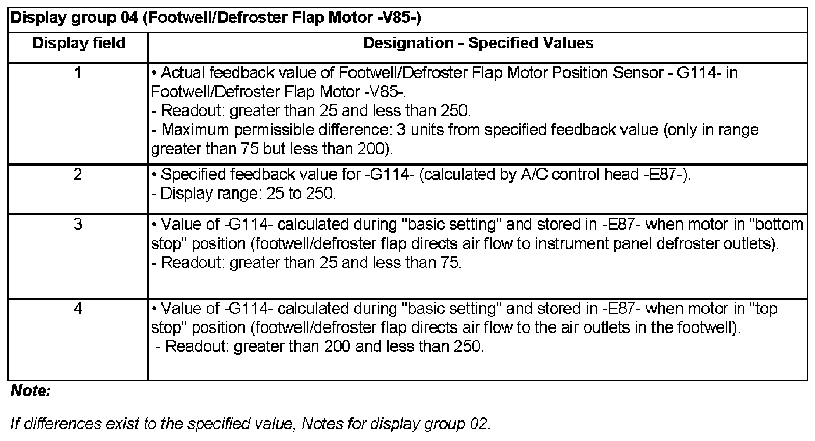Display group 04 (Footwell/Defroster Flap Motor -V85-)