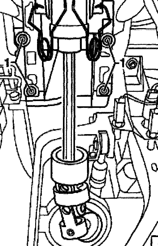 - Remove nut -1- on universal joint.