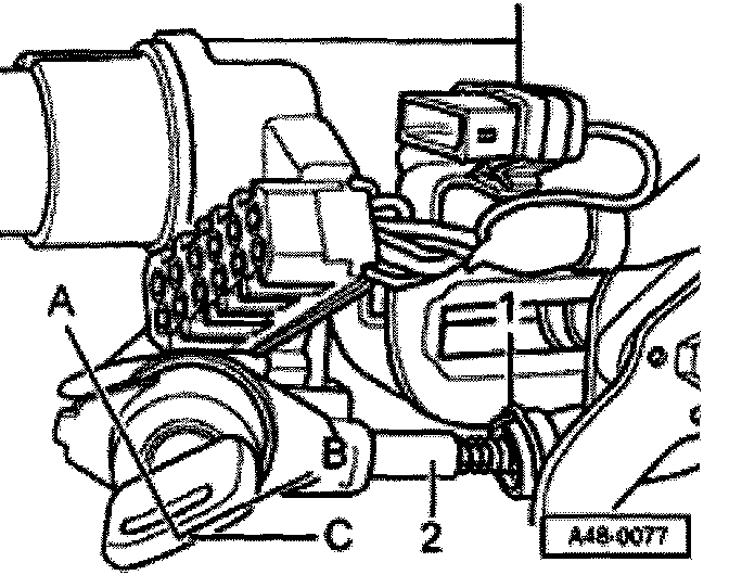 - Disconnect harness connector -1-.