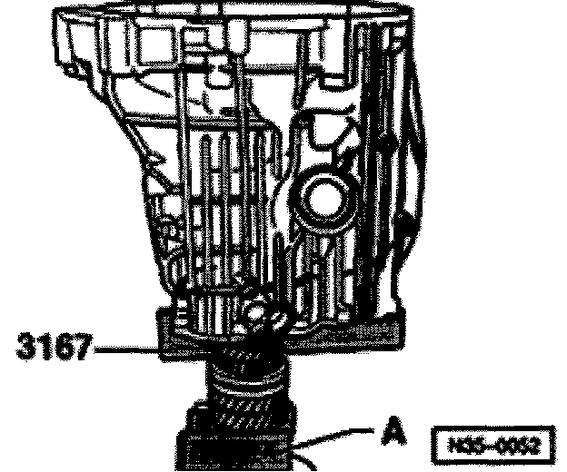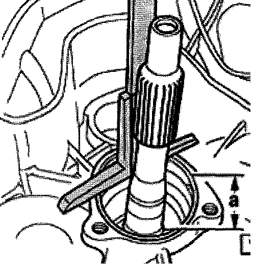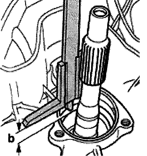 - Place depth gauge onto transmission housing and measure to lower circlip groove of input shaft.