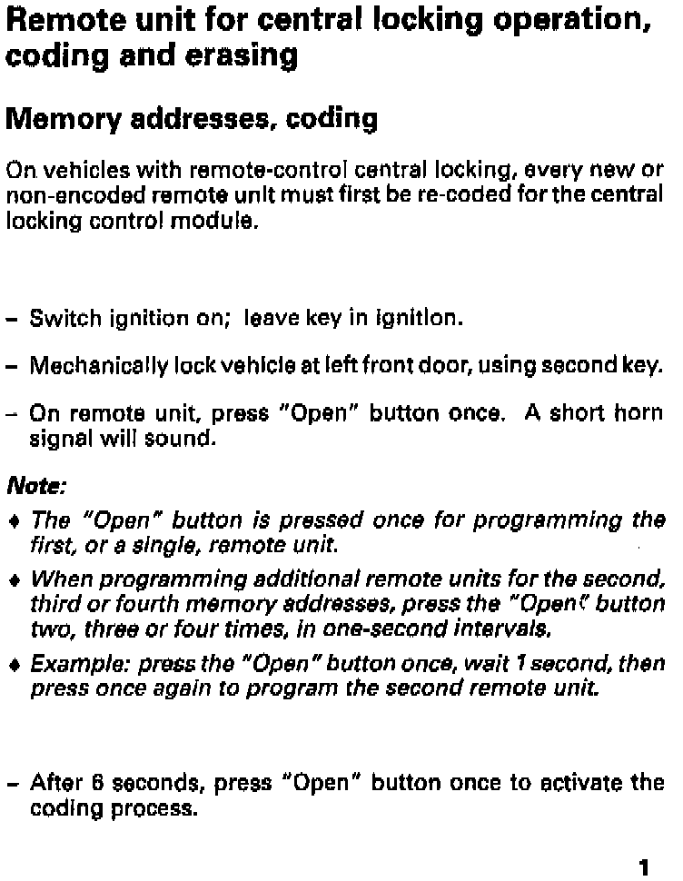Remote Unit For Central Locking Operation, Coding/Erasing