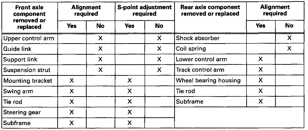 ^ Axle components have been removed or replaced, refer to the above table.