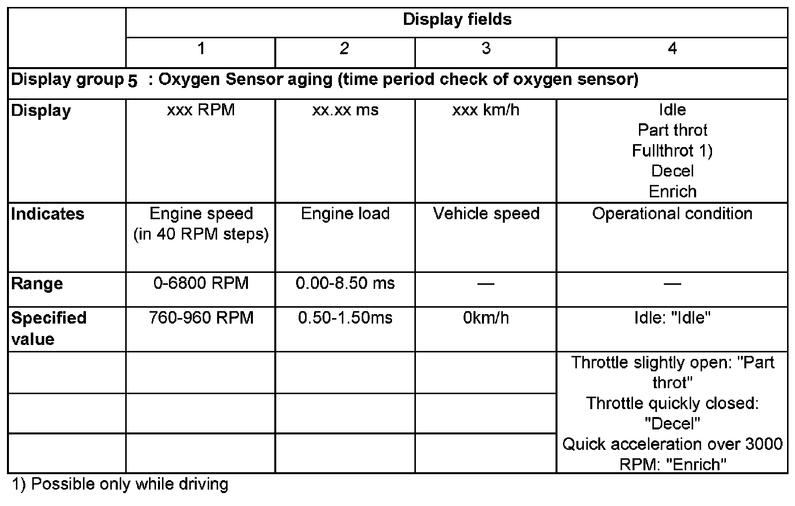 - Check engine operating conditions (display field 4):