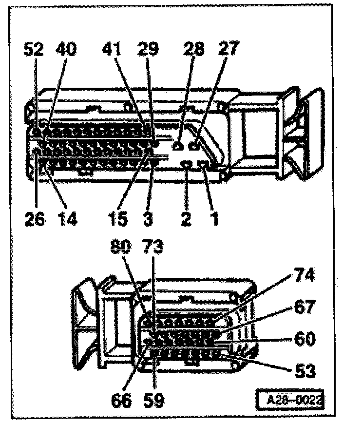 - Connect VAG1598/22 test box to ECM harness connector. Refer to "Scan Tool Testing/Scan Tool Connecting and Initial Checks/Connecting VAG 1598/22 Test Box" Testing and Inspection