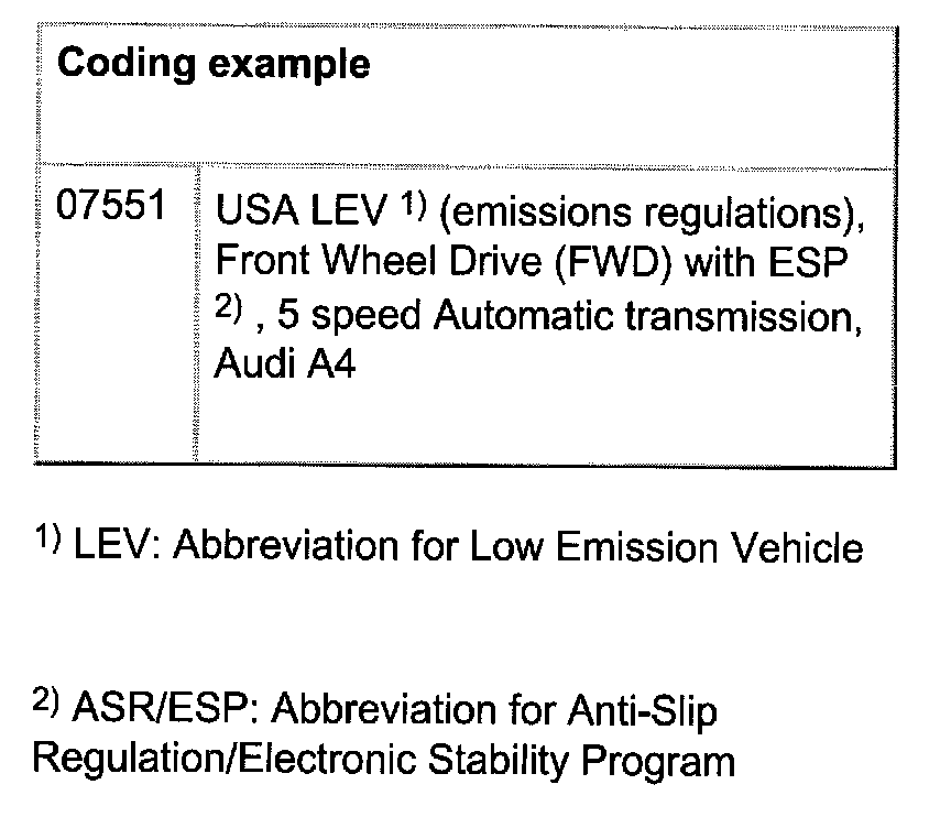 VAG1551 Scan Tool (ST) display indicates control module identification, e.g