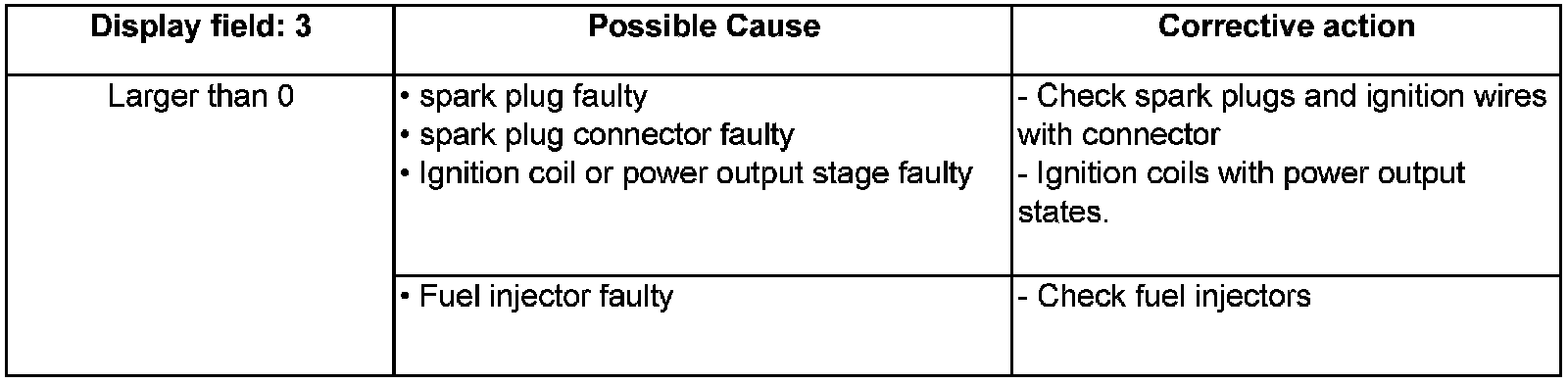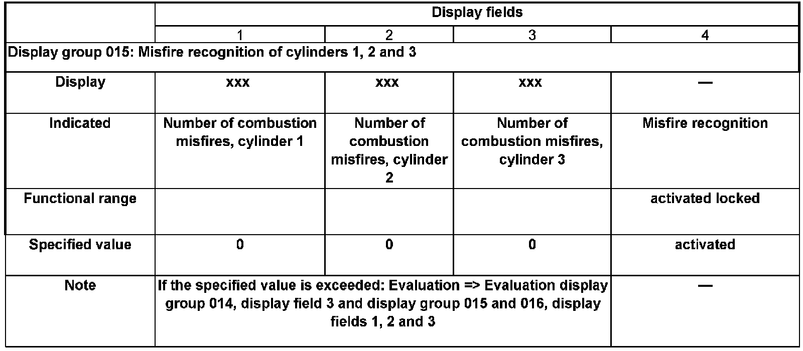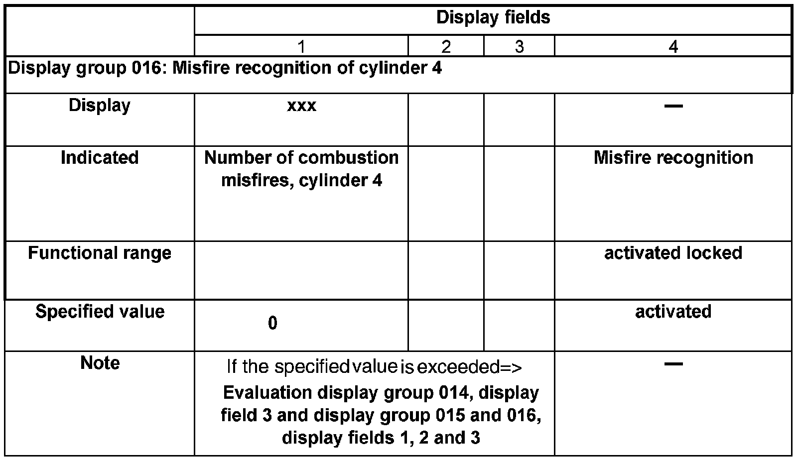 - Check misfire recognition in display fields 1 to 4.