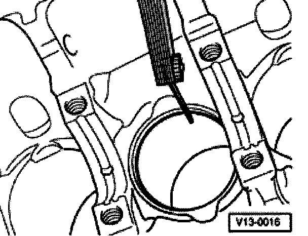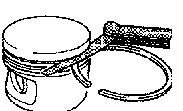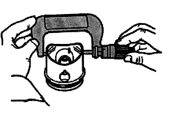 ^ Measure approximately 10 mm (3/8 inch) from bottom edge, at points offset by 90 from piston pin axis.