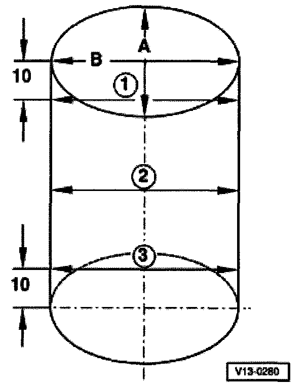 ^ Measure at three locations diagonally in crosswise direction -A- and lengthwise direction -B-.