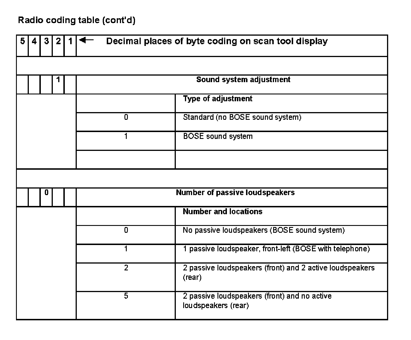 - The coding must always correspond to the equipment installed in the vehicle.