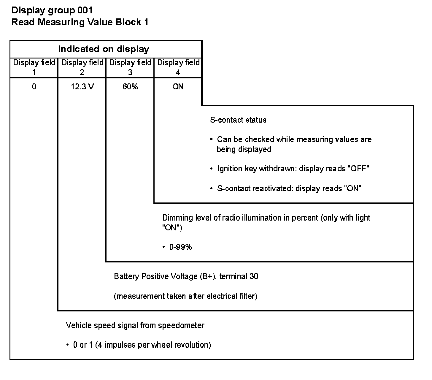 001 1 = Speed signal from speedometer