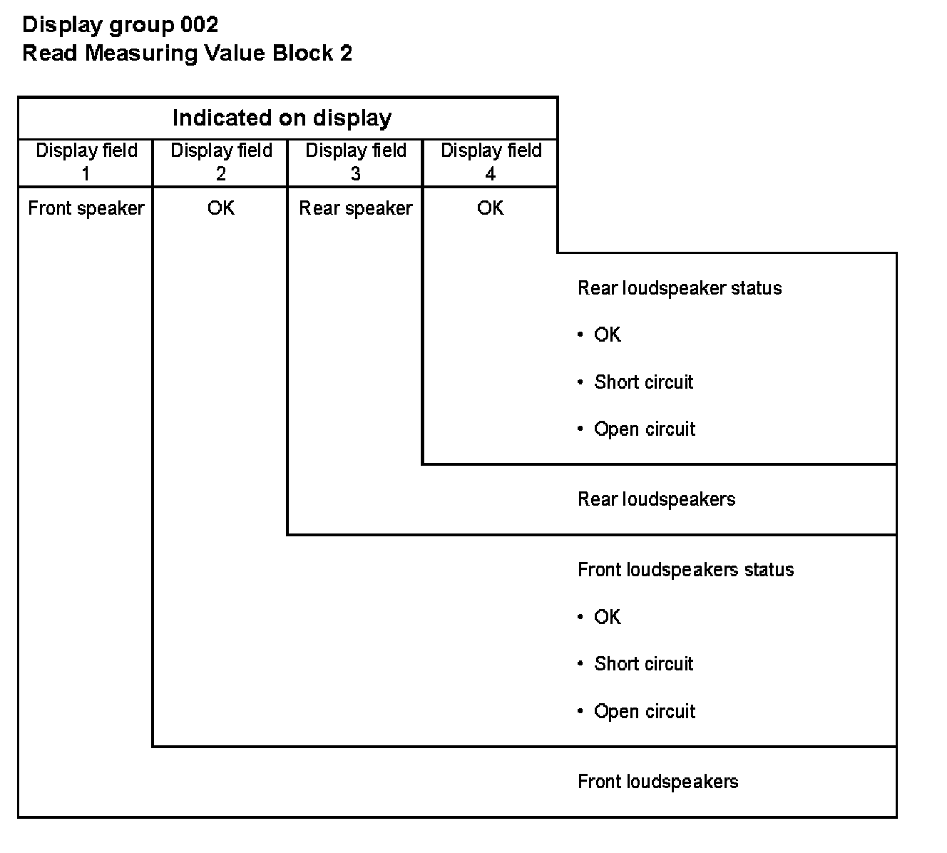 4 = Rear loudspeakers status