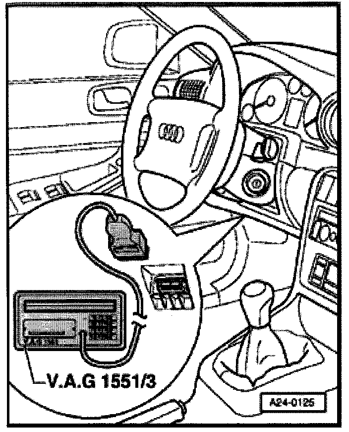 - Connect VAG1551 or VAG1552 Scan Tool (ST) with VAG1551/3 adapter to Data Link Connector (DLC).