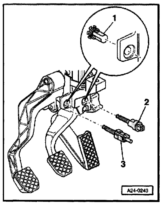 Component location Brake Light Switch -F- and Brake Vacuum Vent Valve Switch For Cruise Control/Diesel Fuel Injection, Clutch Vacuum Vent Valve Switch -F36-