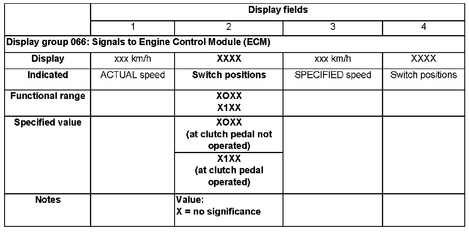 - Check Clutch Pedal Position (CPP) switch in display field 2.