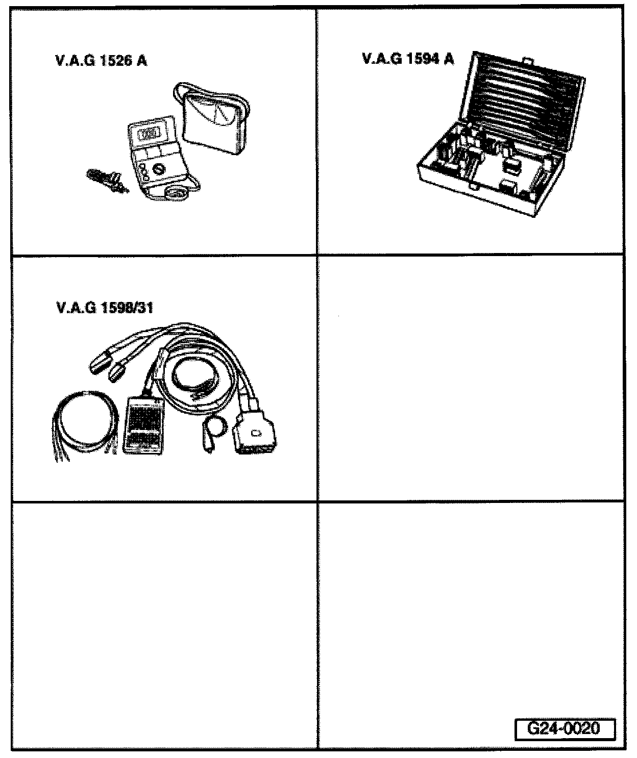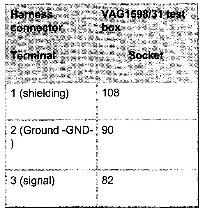 - Connect VAG1598/31 test box at wiring harness to ECM, do not connect ECM. Refer to "Scan Tool Testing/Scan Tool Connecting and Initial Checks/Connecting VAG1598/31 Test Box" Testing and Inspection