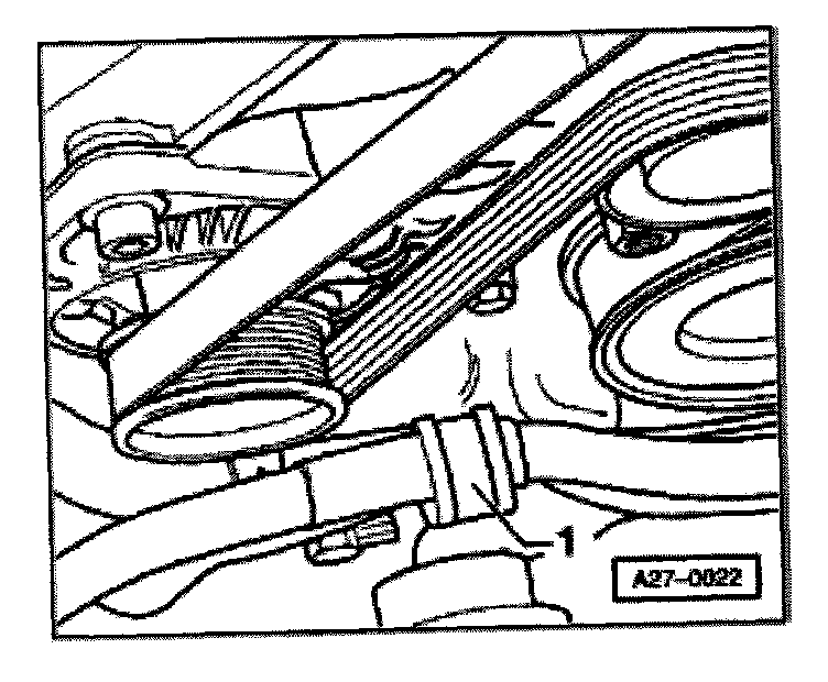- Remove mounting clamp -1- for refrigerant lines above torque arm.