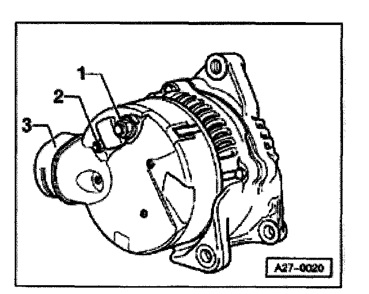 - Disconnect wire on terminal D+ by removing nut -1-.