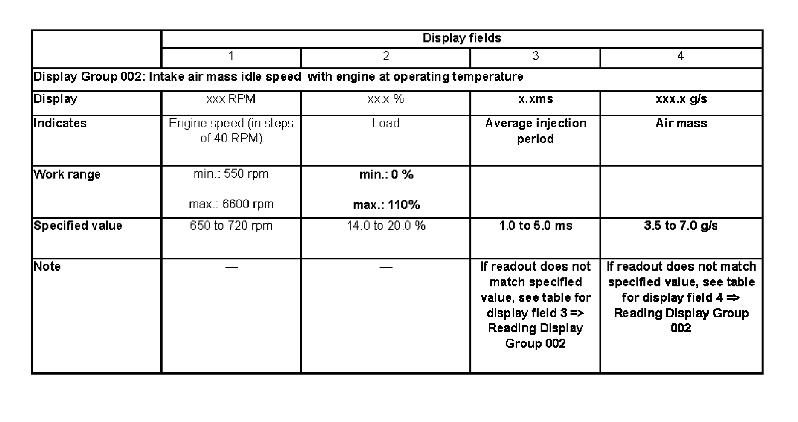 - Check displayed specified values for engine load.