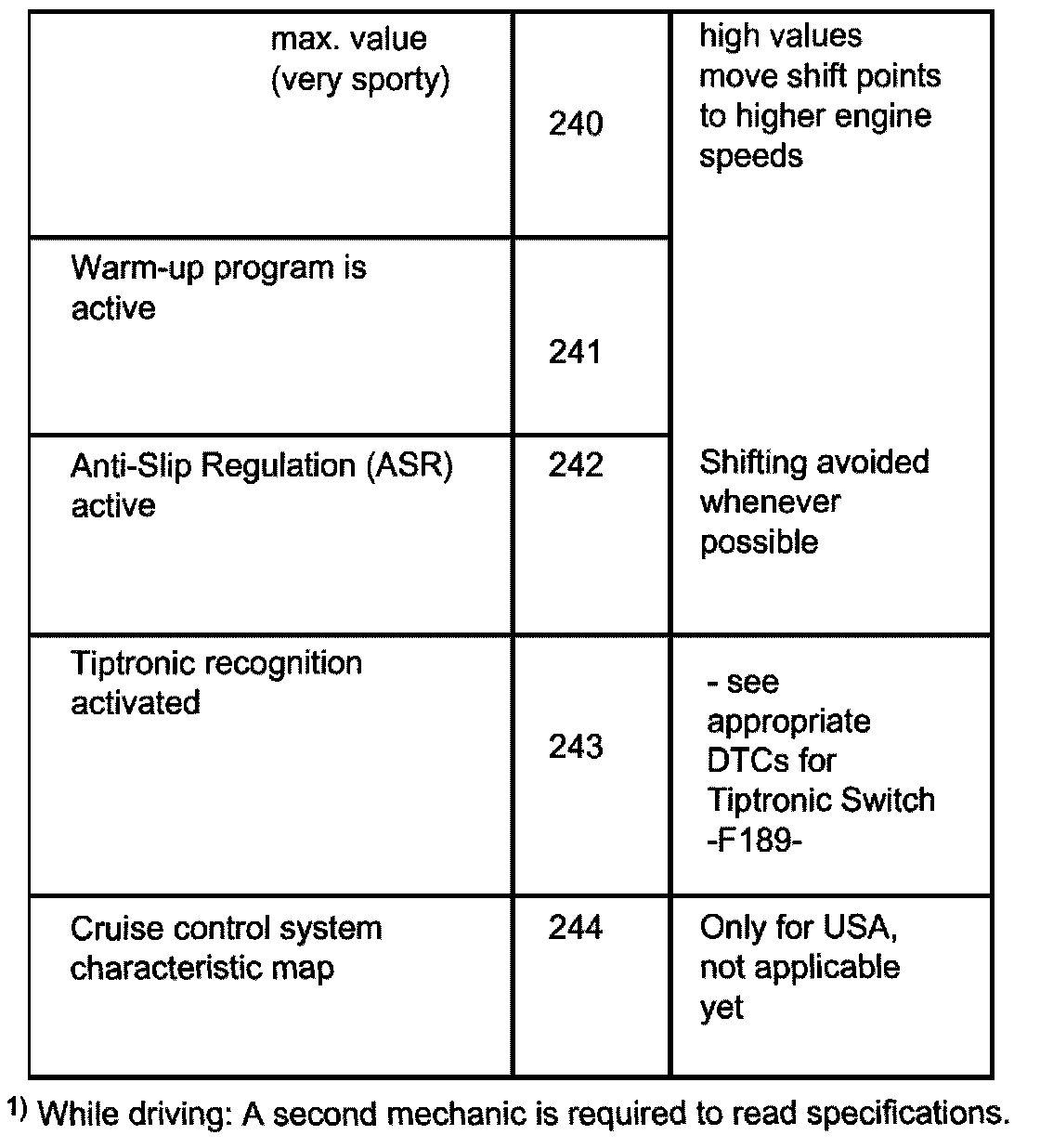 ^ The input signals of the Multi-function Transmission Range (TR) switch -F125- 1) can be checked at the Transmission Control Module (TCM).