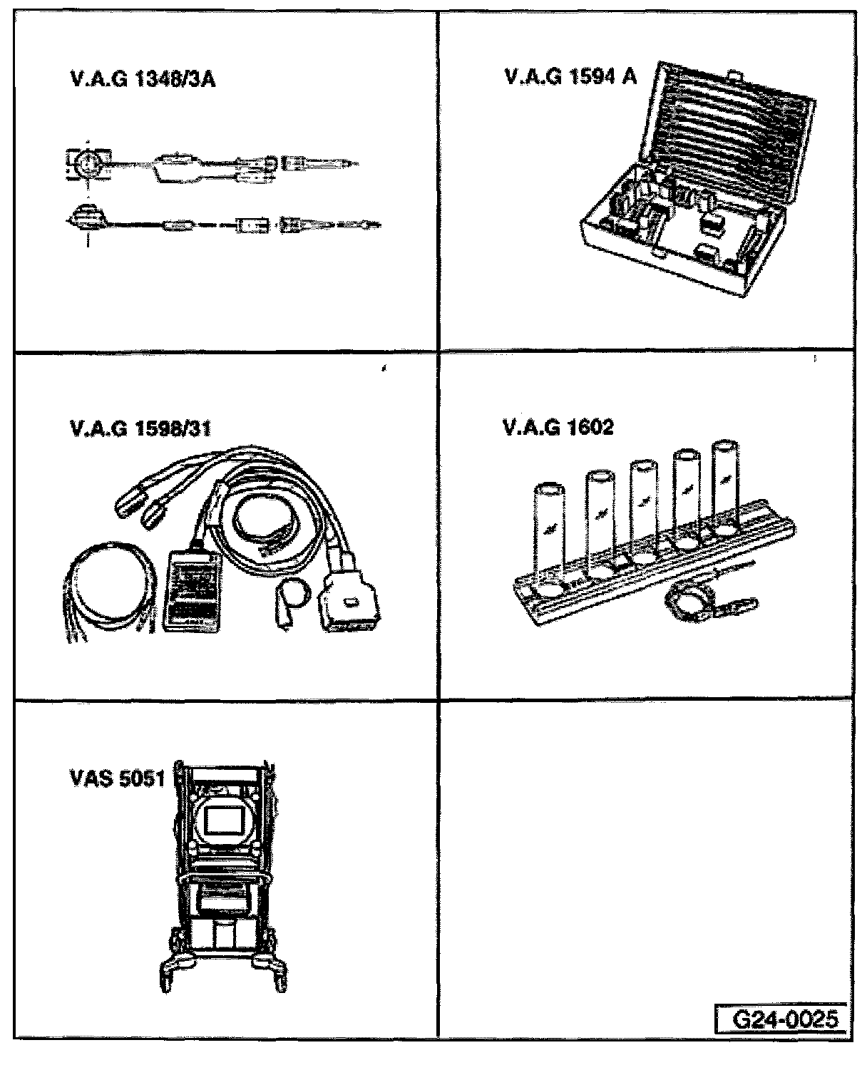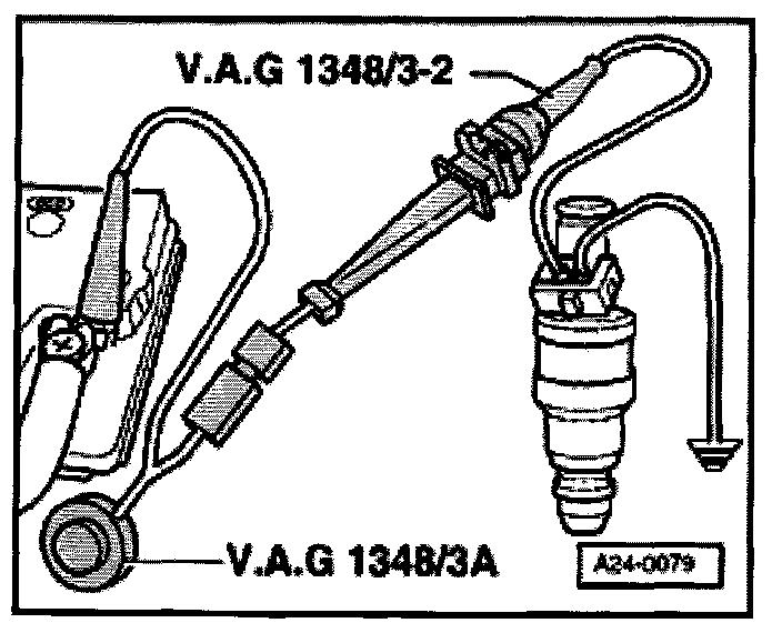- Connect one terminal of fuel injector to engine Ground (GND) using an adapter cable and an alligator clip from VAG1594A connector test kit.