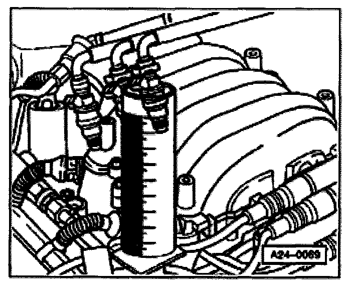 - Insert fuel injector to be tested in a measuring glass from VAG1602 injection quantity test device.