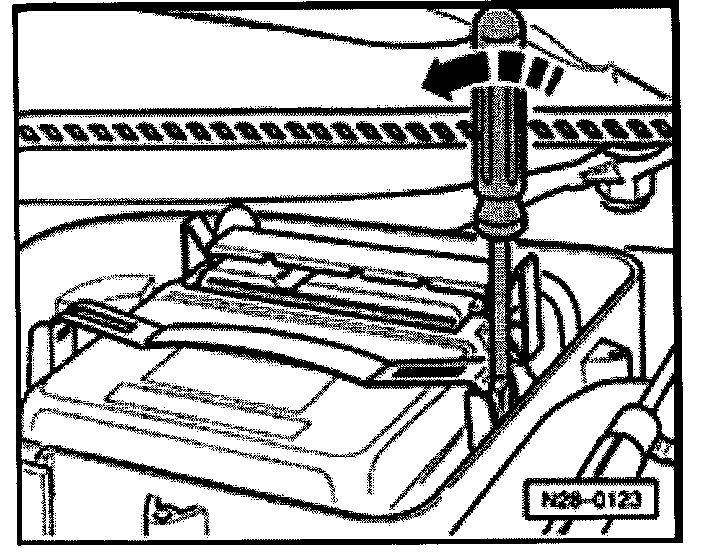 - Carefully lever off the retainer bar with a screwdriver -arrow-.