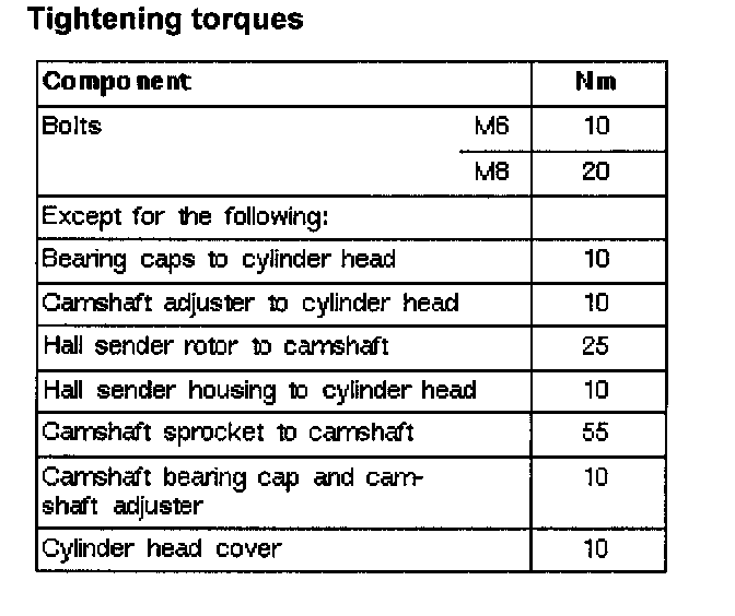 Valve Gear Area Tightening Torques: