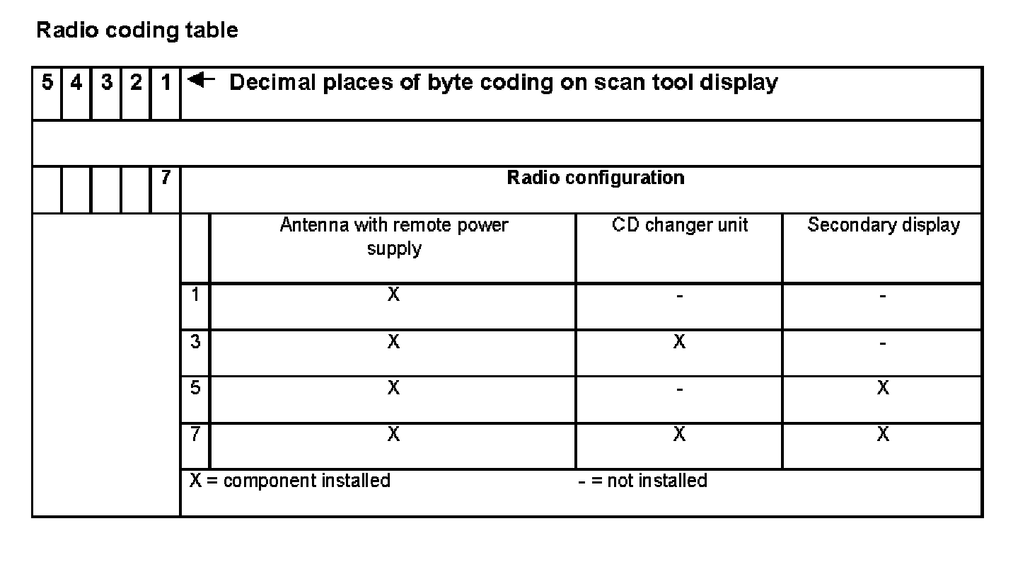 - Radio configuration: 7 = radio system with CD changer unit and secondary display