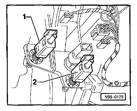 Follow the same procedure for both valves when removing and installing the clutch pedal vent valve -1- and the brake pedal vent valve -2-.