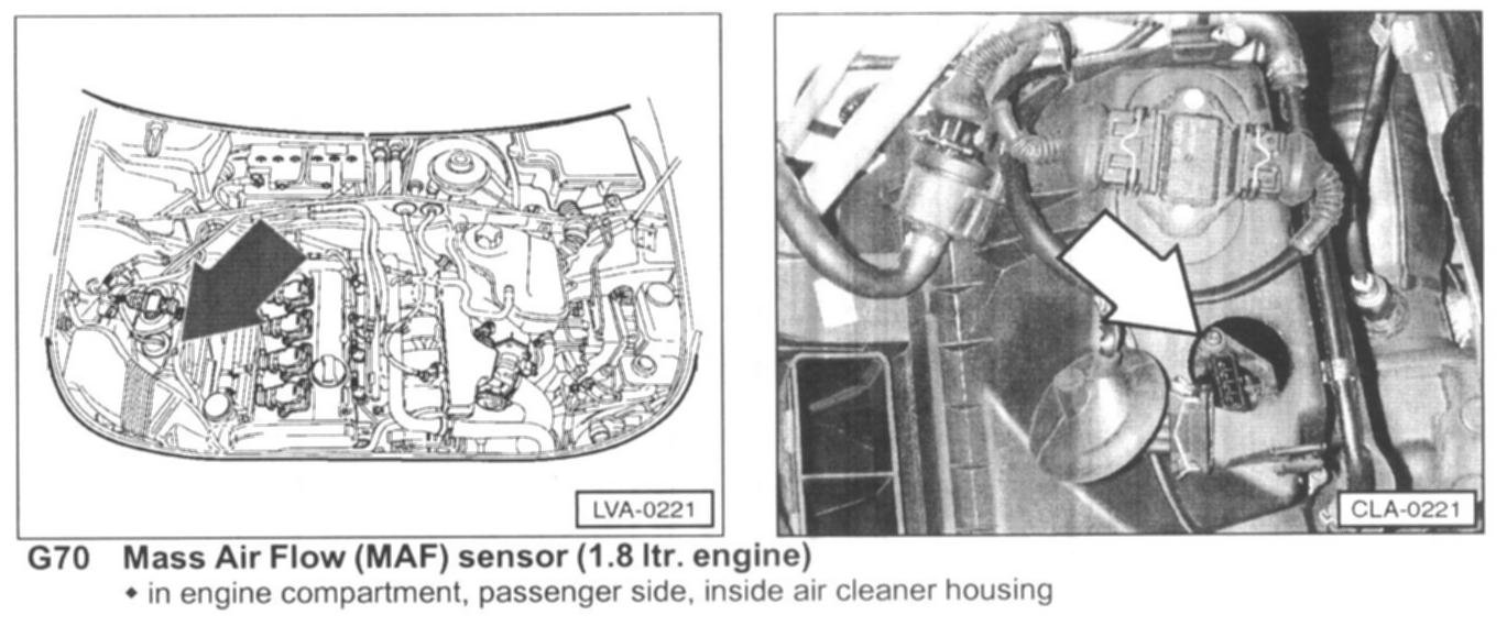 Mass Air Flow (MAF) Sensor (1.8 Ltr. Engine) G70: