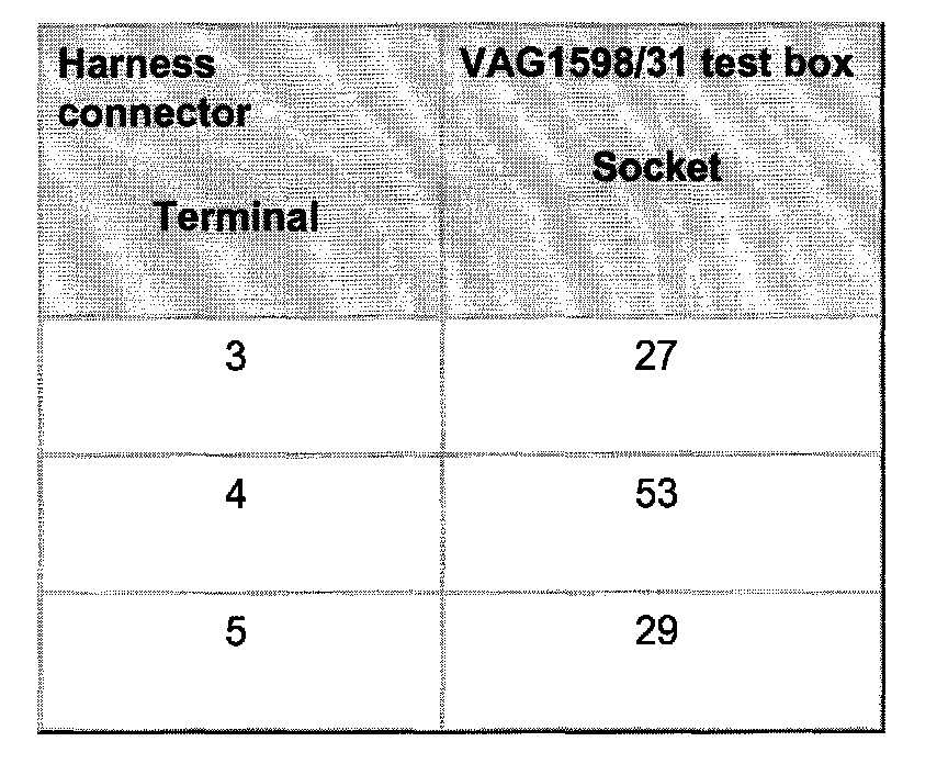- Connect VAG1598/31 test box at wiring harness to Engine Control Module (ECM), do not connect ECM. Refer to "Scan Tool Testing/Wire and Component Testing Using VAG1598/31 Test Box" Testing and Inspection