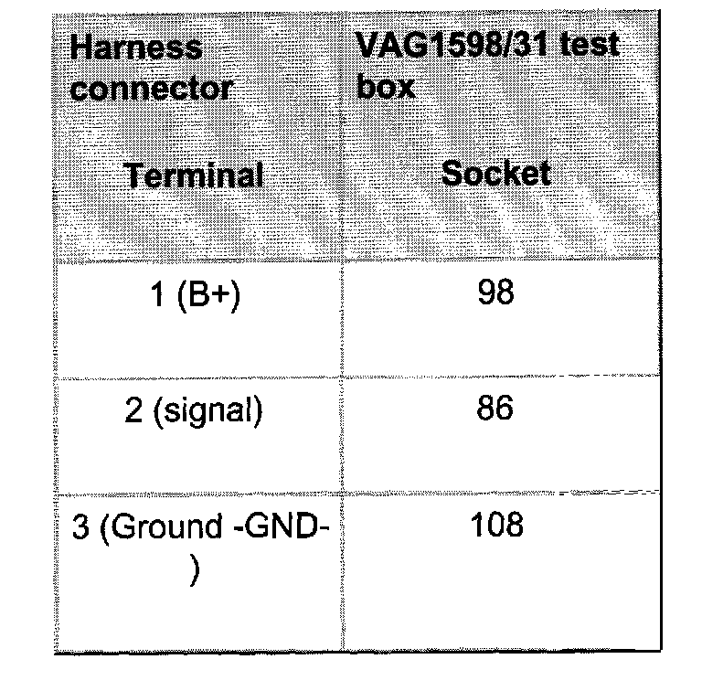 - Connect VAG1527B voltage tester between sockets 2 (CMP sensor signal) and 1 (B+).
