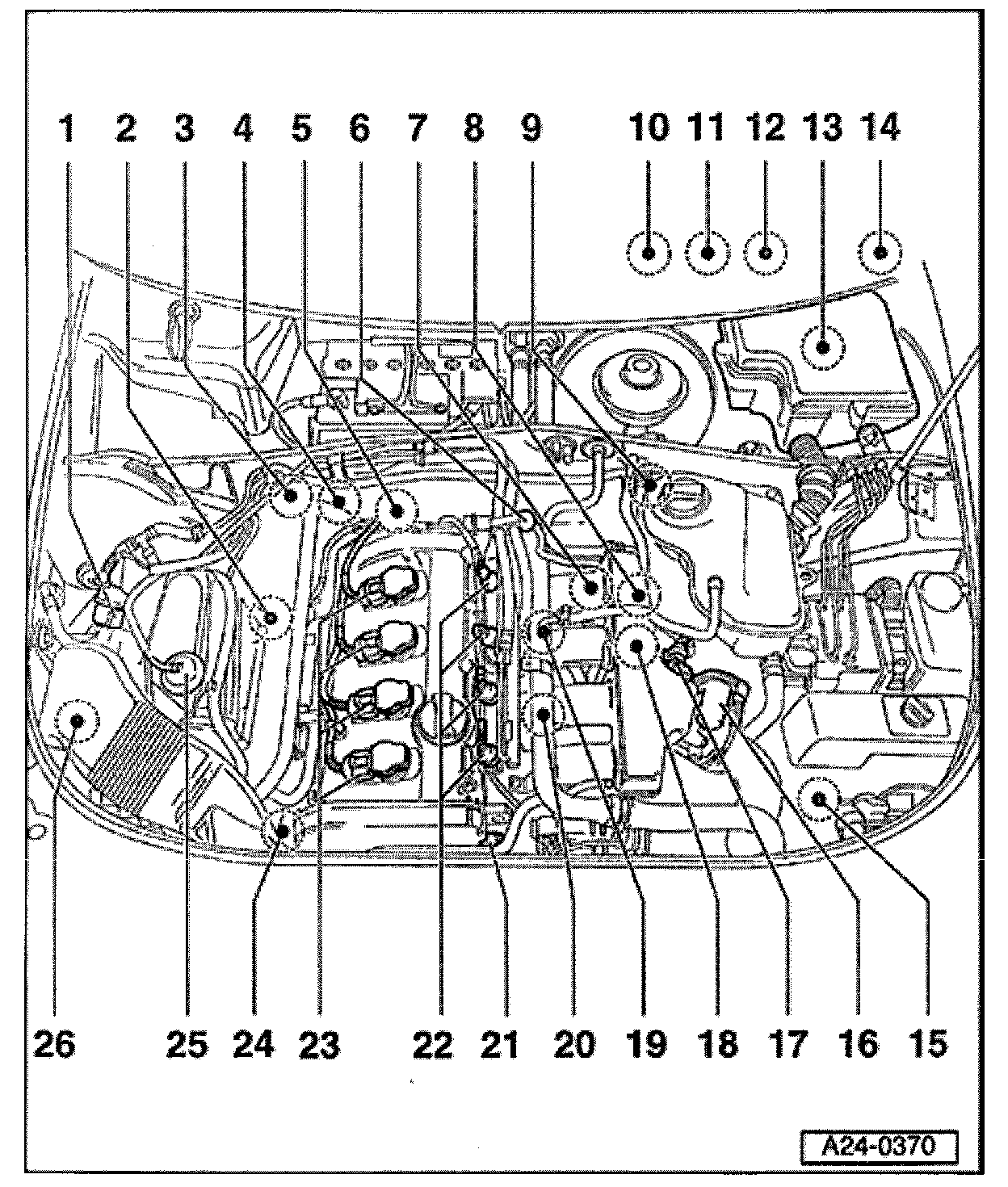 - Installation location for motronic Engine Control Module (ECM) -J220- with integrated Barometric pressure (BARO) sensor -F96-