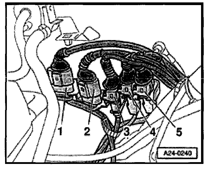 Fig. 4 Installation location of Secondary Air Injection (AIR) solenoid valve -N112- and recirculating valve for turbocharger -N249-