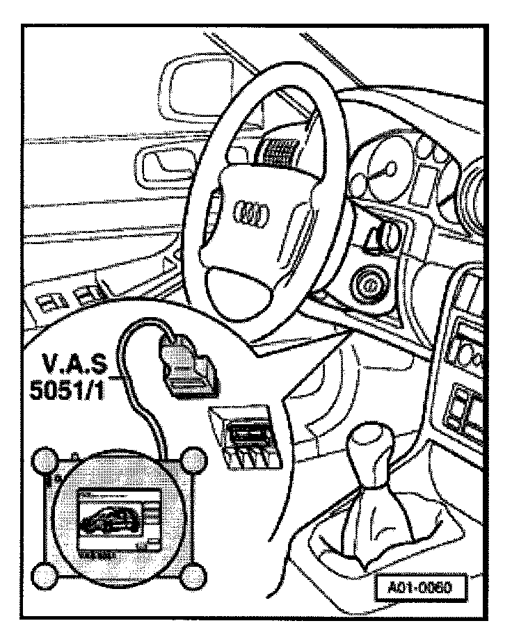 - Connect VAS5051 tester to vehicle with VAS5051/1 diagnostic wire.