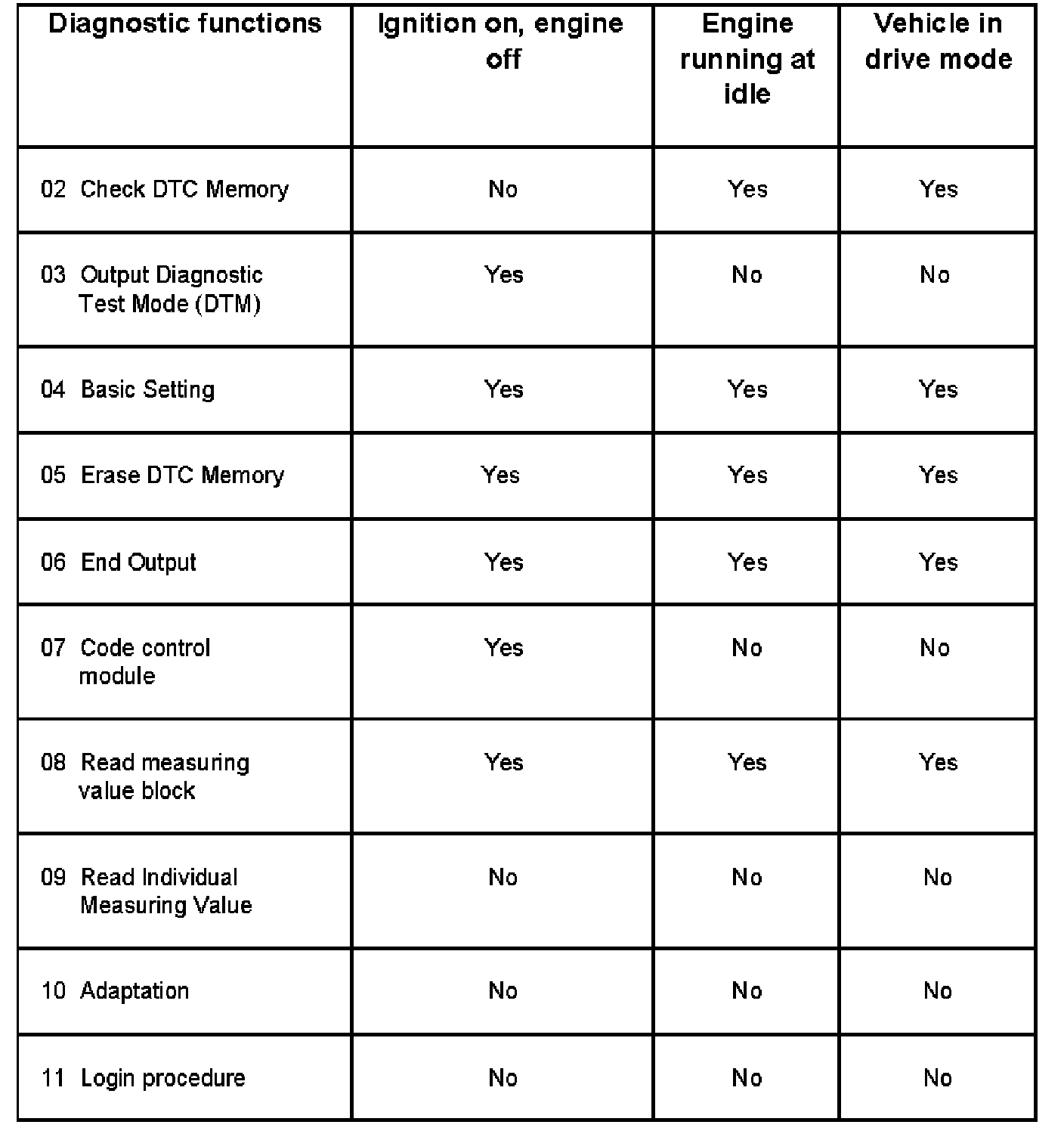 Selectable Functions When Using VAG1551/1552 or VAS5051