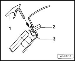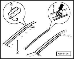 - Press drip rail - 1 - into securing clips - 3 - until stop.