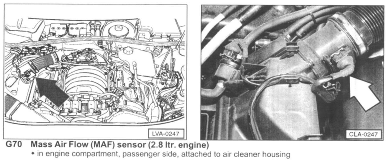 Mass Air Flow (MAF) Sensor (2.8 Ltr. Engine) G70: