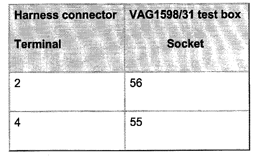- Connect VAG1598/31 test box at wiring harness to ECM, do not connect ECM.