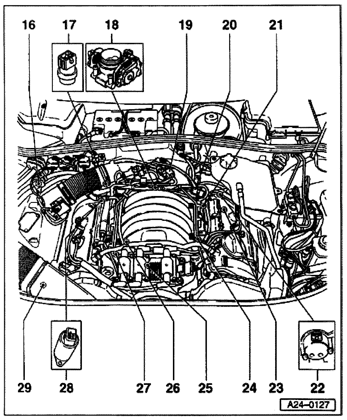23 - Heated Oxygen Sensor (HO2S) 2 -G108- before catalytic converter with Oxygen Sensor (O2S) 2 Heater -Z28-