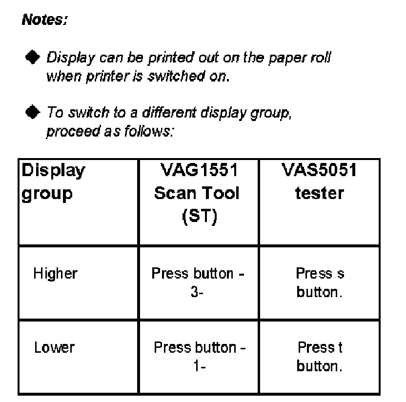 NOTE: Which display group should be chosen depends on current function and component tests.